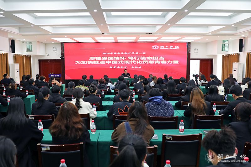 3月12日,党委书记朱洪波在行政楼8501会议室,以《厚植爱国情怀 笃行使命担当 为加快推进中国式现代化贡献青春力量》为题,讲授2024年春季学期“开学第一课”。党委学工部部长张钱主持“开学第一课”。全校各二级学院分管领导、辅导员、研究生代表、本科生代表参加“开学第一课”。
