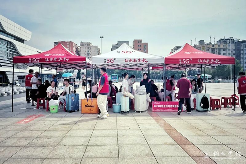 迎新活动主要在南大门和明德湖广场举行,现场秩序井然。迎新展牌上“欢迎2024级新同学”的醒目标语,整齐排列着五颜六色的迎新帐篷,身着各色服装的迎新服务队和志愿者,还有新生脸上洋溢着青春的笑容,形成了校园里一道靓丽的风景线。