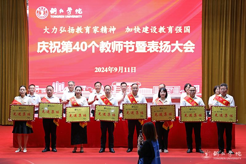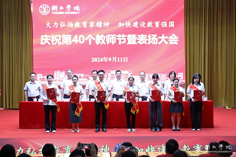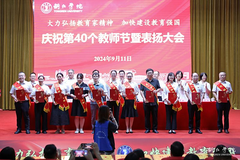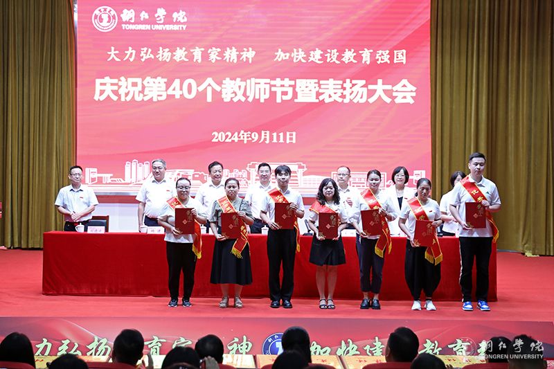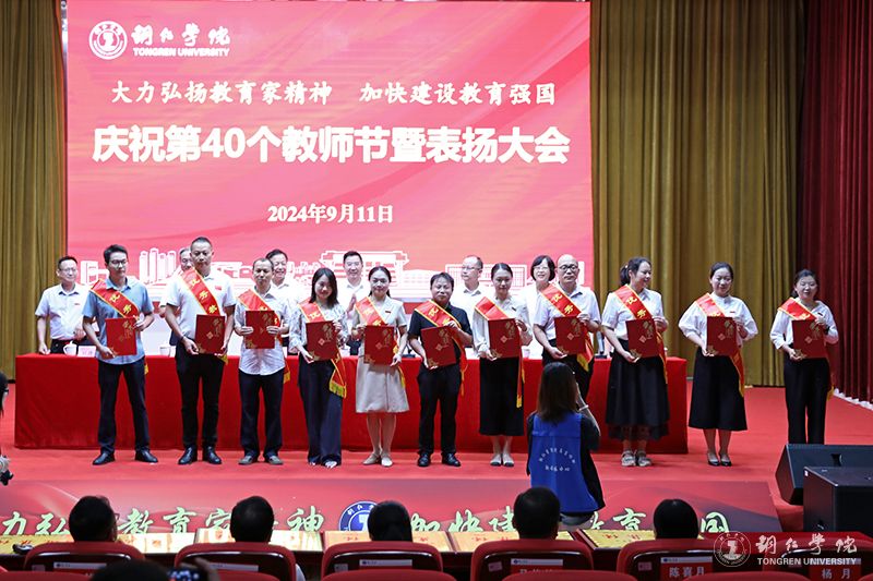 为贯彻落实习近平总书记重要讲话精神,用教育家精神铸魂强师,推进新时代立德树人工程,9月11日,beat365在梵净山人文生态馆召开庆祝第40个教师节暨表扬大会。党委书记朱克乾出席会议并讲话;校长石维主持会议;纪委书记吴先佳,副校长罗静、杨建、龚静,党委委员、统战部部长刘德平出席会议。
