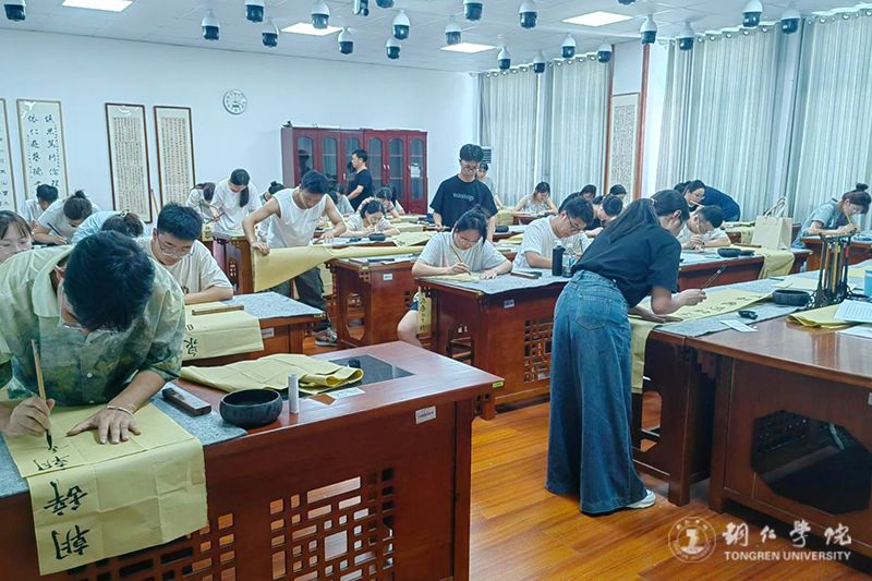 近日,beat365第三届“三书”大赛在学科楼“三笔字”(硬笔字、毛笔字、粉笔字)实训室举办,来自各二级学院内部选拔推荐的33名选手参加校级决赛。