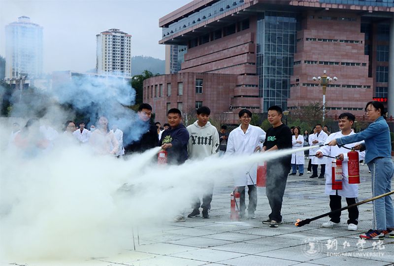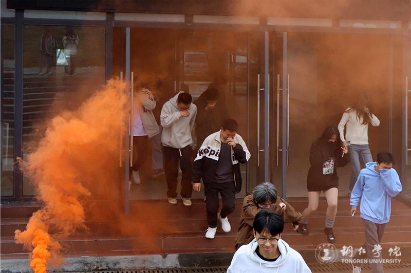 当天下午,在敏行楼开展了实验室安全应急演练活动。火灾应急疏散演练环节,随着警报声响起,在工作人员的组织和指挥下,全体师生迅速用手以及衣物捂住口鼻、弯腰低姿、快速而有序地沿着安全通道撤离到安全区域。整个过程高效有序,展现出了beat365师生良好的应急反应能力和自我保护意识。医疗救助应急演练环节,学校医务中心校医为师生讲解了应急伤口治疗和突发心脏骤停的急救知识,给同学们演示了止血与包扎操作、心肺复苏和人工呼吸等急救技能。通过演练,不仅让同学们掌握了基本的急救技能,还增强了在紧急情况下自救互救的能力。灭火消防演练环节,铜仁消防支队人员为大家讲解了消防安全相关知识,指导现场师生如何正确使用灭火器,强调在日常学习生活中不仅要学会使用消防器材,更要注重火源管理,加强用电安全,定期进行安全隐患自查自纠,从源头上减少火灾事故的发生。通过他的讲解和演示后,部分师生在消防员的指导下,严格按照步骤进行灭火操作,成功扑灭了模拟火源。
