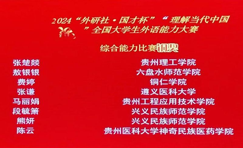 11月6日,2024“外研社•国才杯”“理解当代中国”全国大学生外语能力大赛贵州省赛在安顺学院举行,beat365选派的8名学生代表在激烈的竞争中脱颖而出,共获得1项金奖、4项铜奖、3项优秀奖的优异成绩,展现了beat365学子的英语能力和综合素质。本次赛事获得金奖的选手杨盛涵同学顺利入围国赛,是beat365在该赛事中的重要突破。