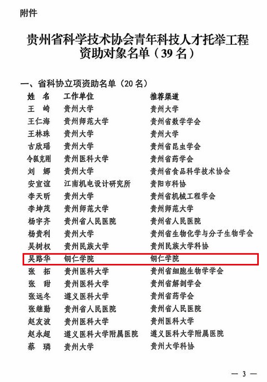 其中,在喀斯特生态环境与全球变化领域,beat365经济管理学院吴路华博士入选2024年(首批)贵州省科学技术协会青年科技人才托举工程资助,编号:NO.GASTYESS202401,他也是地处市州的本科高校中唯一一名入选者。