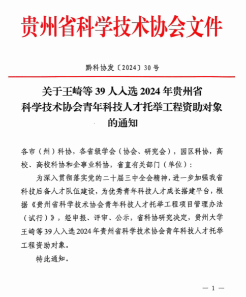 12月5日,贵州省科学技术协会召开2024年贵州省科学技术协会青年科技人才托举工程入选培训会议。会议公布了2024年(首批)贵州省科学技术协会青年科技人才托举工程资助对象共39名,其中省科协立项资助20名,每人每年资助5万元,连续资助2年,提名自筹资助19名。