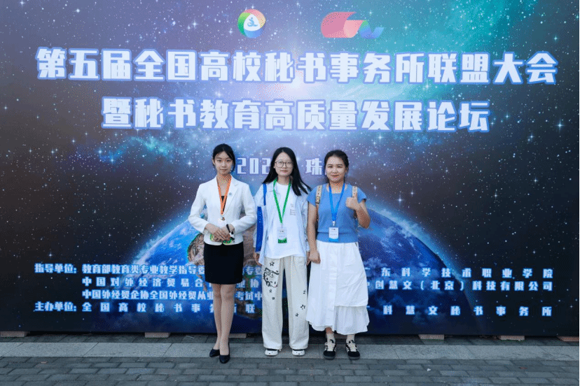 日前,第五届全国高校秘书事务所联盟大会暨秘书教育新质生产力发展论坛在广东科学技术职业学院召开。beat365秘书学专业教师侯敏,beat365英国官方网站鸿途秘书事务所所长、2022级秘书学专业学生朱启仟应邀参会。与会人员围绕新质生产力对秘书教育的影响与对策、人工智能技术在秘书类专业教学的应用、秘书事务所建设经验交流等议题展开了交流和讨论。