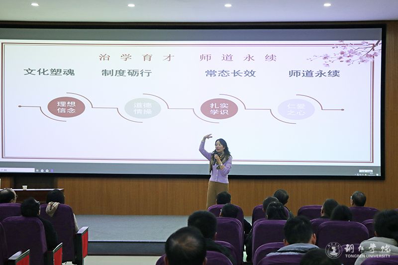 宣讲会上,张葳以“筑师魂 树师风 争做四有好老师”为主题,通过引经据典、介绍经验、分享案例等方式进行宣讲。她说,我们要牢记习近平总书记的殷切嘱托,切实担负起传播知识、传播思想、传播真理,塑造灵魂、塑造生命、塑造新人的时代重任,争做有理想信念、有道德情操、有扎实学识、有仁爱之心的好老师,真正成为学生锤炼品格、学习知识、创新思维、奉献祖国的引路人。通过宣讲,让大家更加深刻地认识到师德师风的重要性,不断激励大家在今后的教育教学工作中践行高尚师德,展现良好师风。