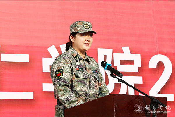 军训教官代表杨洪浩发言说,要一切从自我做起,以良好的军人形象带领大家,以过硬的军事本领引导大家,让同学们通过这次军训提高政治思想觉悟,增强集体主义精神和组织纪律观念,培养吃苦耐劳的精神,增强国防观念。军训学生代表李剑兰表示,将以军人的身份严格要求自己,自觉接受一次人生考验,克服骄气,努力培养自己吃苦耐劳的意志品质。