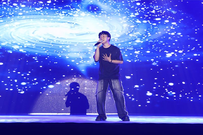 晚会第二篇章:在一起的那些年。朗诵《明德湖畔的记忆》,打捞课堂研讨、湖畔漫步、社团拼搏片段,凝成了成长剪影。非遗展示秀《青蓝山水卷》特邀校友与在校学子携手,融合苗歌、变脸,以“非遗”连通传承根脉,用演唱展示民族风情与青春朝气。街舞《青春成长记》记录了少年人青涩到成熟蜕变,舞者们活力迸发,作青春张扬注脚。歌曲联唱《那些年+流浪记+后来+夜空中最亮的星》,借歌声串起青春遗憾、迷茫与方向,深情回望“在一起的那些年”。