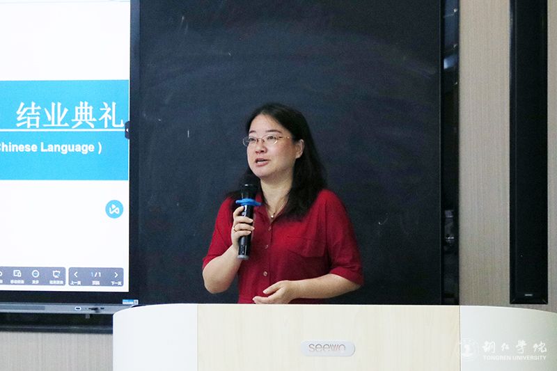 视频播放结束后,语言生班主任代表刘菊凤老师走上讲台发言,她提到,为帮助学生适应异国生活,老师们不仅在课堂上逐字逐句纠正发音,更在课后陪他们购物、就医、跑银行……看到他们现在能用中文写作文、发朋友圈,感到无比欣慰。