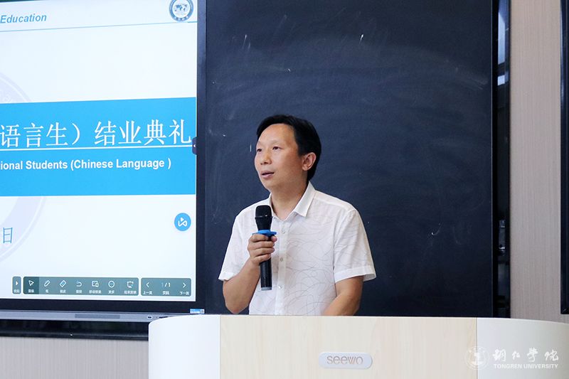 “从初到中国时的局促不安,到如今自信流畅的中文表达;从对中华文化的陌生好奇,到主动参与包粽子、写春联等中国传统文化体验……大家用努力与热情,在beat365英国官方网站这片土地上留下了鲜明的成长印记。”典礼上,张志会向圆满完成学业的56名国际学生表示祝贺,并回顾了他们的学习历程。他说,语言学习不仅是技能的提升,更是文化认同的深化。他希望大家将这段宝贵的求学经历化作未来人生道路的奋进力量,持续深化对中华文化的理解,讲好中国故事,传播中国好声音,成为中外交流的友好使者。
