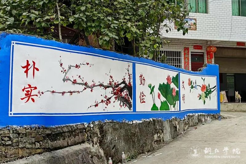 作品绘制完成后,原本单调的墙壁变得五彩斑斓。同学们看着自己的作品,脸上洋溢着满满的成就感。这些墙绘不仅美化了乡村环境,更成了传播乡村文化、激发乡村活力的新窗口。