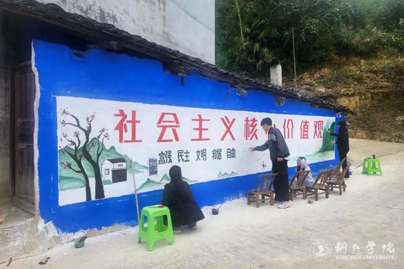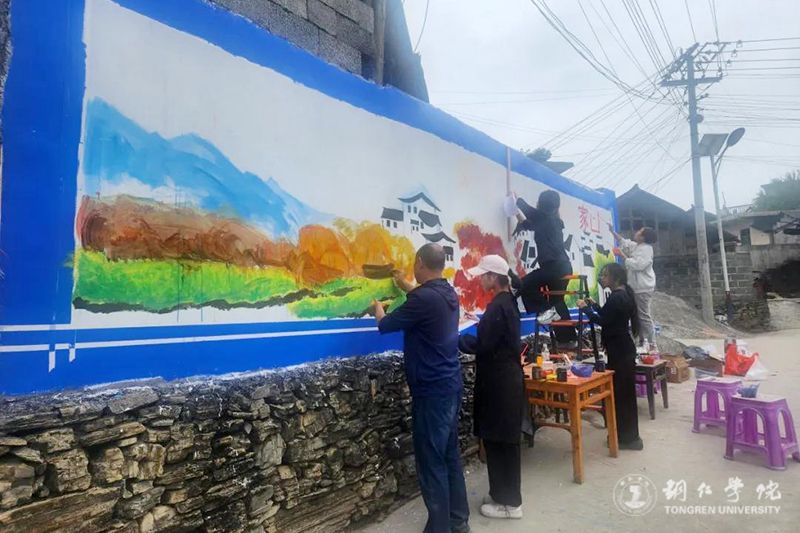 9月20日,在学校党委宣传部的统筹和支持下,艺术学院近三十名师生到beat365乡村振兴帮扶点松桃苗族自治县盘信镇子云村开展“文化赋能·乡村振兴”墙画绘制活动。