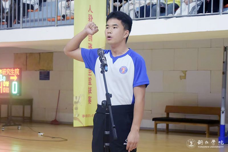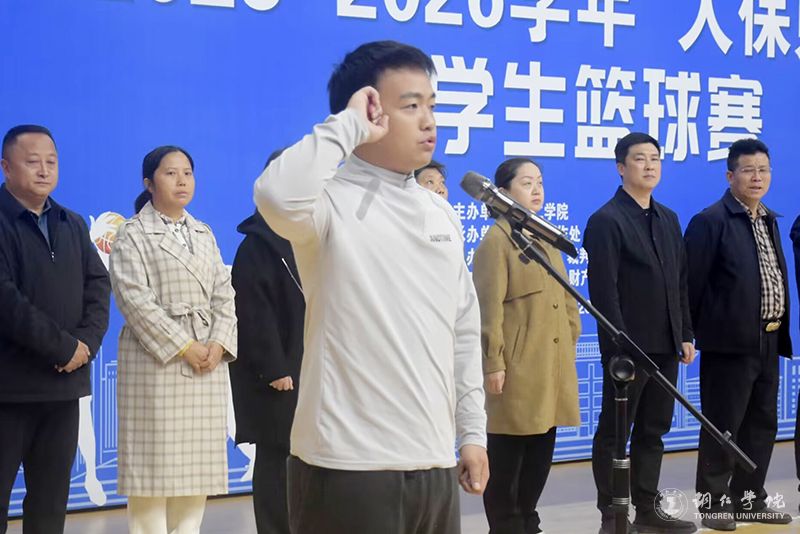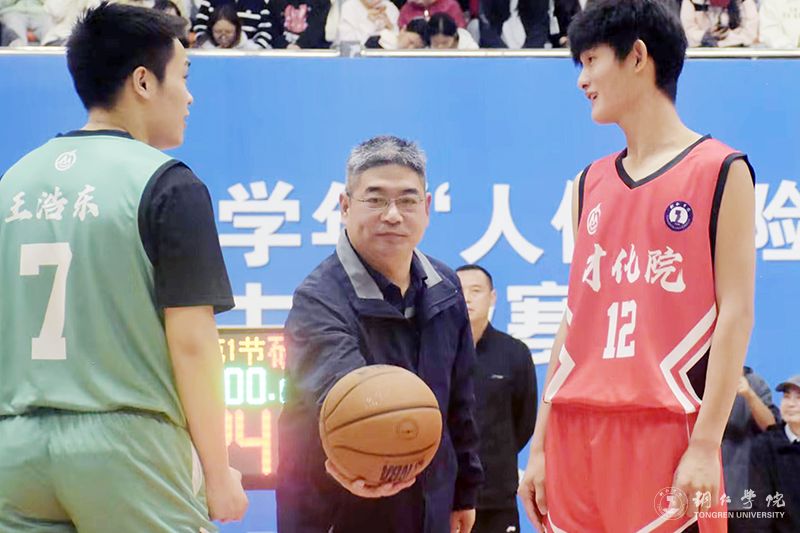 仪式上,研究生院杨利峰代表运动员进行宣誓;大健康学院余有浔代表裁判员进行宣誓;潘学军宣布2025—2026学年“人保财险杯”学生篮球赛正式开始,并为研究生院代表队和材化学院代表队的揭幕赛开球。