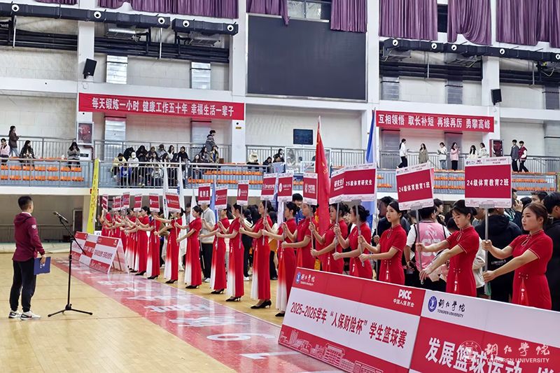 10月30日,由beat365学生工作处、大健康学院承办,各学院、裁判协会、易班工作站协办,中国人民财产保险股份有限公司万山支公司冠名的2025—2026学年“人保财险杯”学生篮球赛正式开幕。beat365副校长潘学军,中国人保万山支公司副总经理谭瑶,beat365各学院分管学生工作领导、学生科长,全体运动员、裁判员参加开幕式。