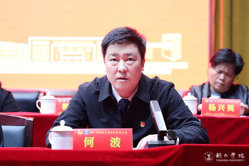 何波致辞,对大会的召开表示祝贺,向莅临大会的各位领导和嘉宾表示感谢。他说,过去一年,学生会坚持以习近平新时代中国特色社会主义思想为指导,全面贯彻校党委和省学联的工作部署,紧密围绕学校中心工作,积极进取,开拓创新,认真履职,取得了显著成绩。他指出,学生会作为学生自我服务、自我管理、自我教育、自我监督的重要组织,要自觉扛起时代赋予的使命,以高度的责任感和强烈的担当精神,团结带领广大同学,为实现学校发展目标贡献智慧与力量。他希望学生会要以此次学代会为新的起点,在思想引领、服务大局、组织改革等重点领域持续深耕、锐意突破。