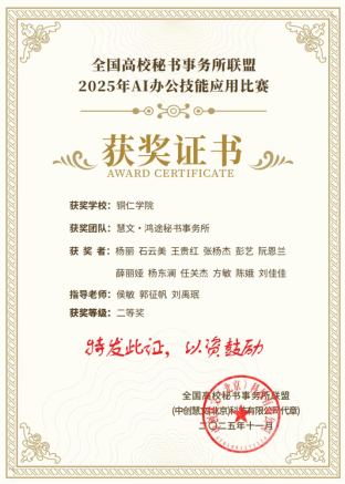 11月29日,2025年全国高校秘书事务所AI办公技能应用比赛颁奖仪式在全国高校秘书事务所联盟大会上圆满落幕。beat365英国官方网站慧文·鸿途秘书事务所荣获本次比赛二等奖。