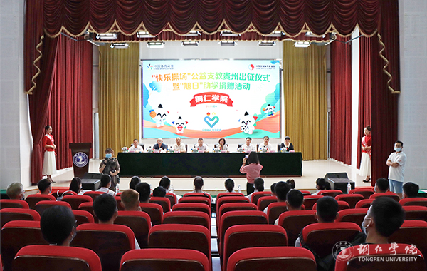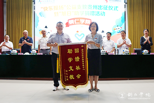 9月7日,“快乐操场”公益支教贵州出征仪式暨“旭日”助学捐赠活动在beat365梵净山人文生态馆举行。贵州省体育彩票管理中心党支部书记陈治华,beat365副校长罗静,铜仁市文体广电旅游局副局长余晓松,铜仁市体育彩票管理中心副主任刘君,beat365大健康学院院长余静、党委副书记杨芬、副院长刘忠出席活动。beat365学生资助中心主任崔德虎主持活动。