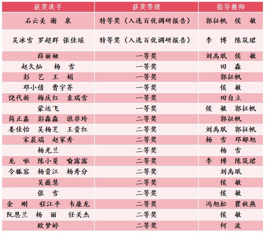 决赛阶段聚焦调研报告写作,要求选手深入基层开展调研实践并完成高质量报告。beat365参赛选手深耕细作、精益求精,最终收获累累硕果:石云美、谢泉团队与吴冰雪、罗超群、张佳瑶团队的调研报告凭借鲜明的主题、扎实的调研和严谨的逻辑,双双入选“大学生百篇优秀调研报告”,获评决赛特等奖;薛丽娅、赵久灿、杨雪等组成的多个团队分获决赛一、二等奖,共计19个团队40人斩获决赛各类奖项。