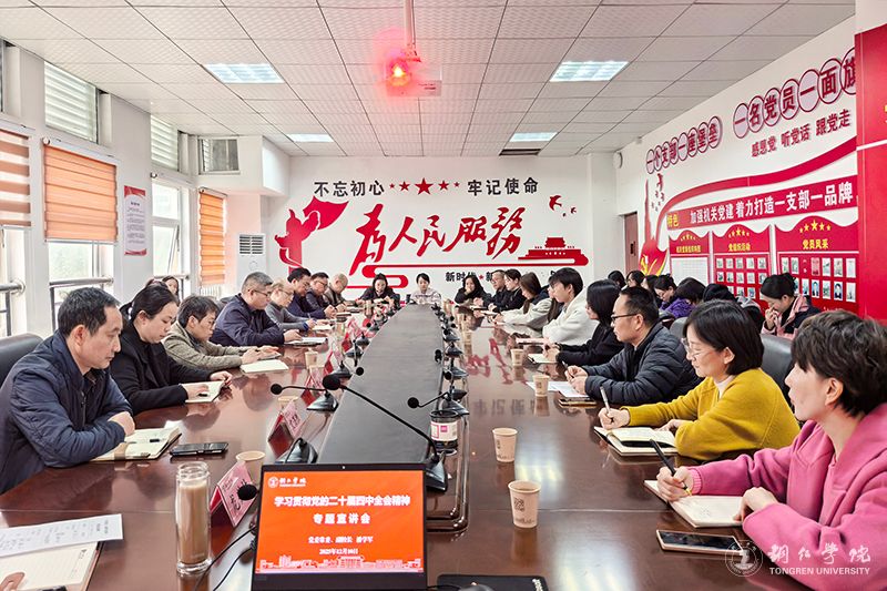 潘学军结合工作实际指出,学习贯彻好党的二十届四中全会精神,是当前和今后一个时期的一项重大政治任务,我们要自觉在坚定拥护“两个确立”、坚决做到“两个维护”上见思想、见行动、见实效。全体师生要提高站位、深学深悟,全面准确把握全会精神的丰富内涵与实践要求,坚持学用结合、以学促干,为学校高质量发展凝聚磅礴精神力量。