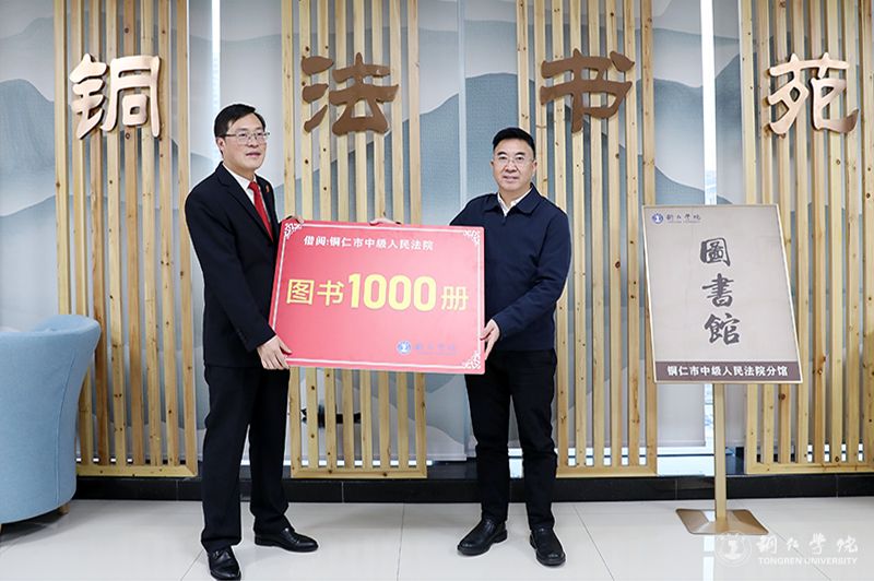 在共建“铜法书苑”启用环节,朱克乾代表学校向铜仁中院“铜法书苑”捐赠了首批涵盖法学理论、人文社科、经典名著等多个领域的图书1000册。