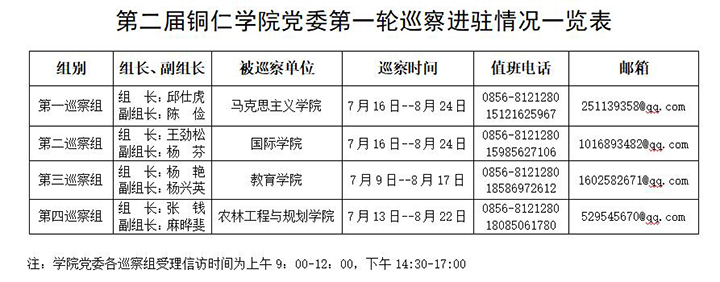 学院党委巡察组将在各被巡察单位工作到8月底。根据《中国共产党巡视工作条例》规定,巡察期间设专门值班电话和邮箱,主要受理反映被巡察单位党组织领导班子及其成员、下一级党组织主要负责人和重要岗位领导干部问题的来信来电来访。巡察组受理信访的时间截止2021年8月17日。