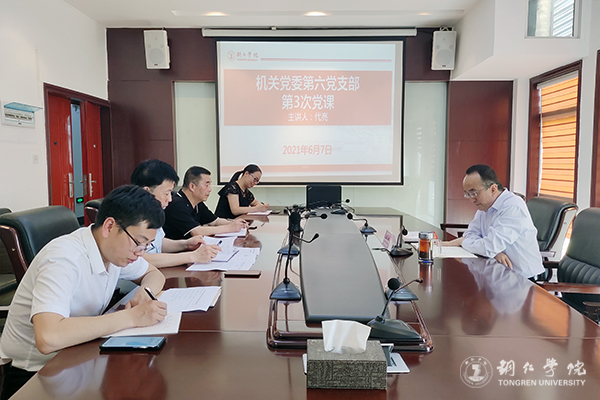 6月7日,学校党委副书记代亮到机关党委第六支部,为该支部全体党员作了题为“通过学习党史,了解中国共产党为什么能?”的党史学习教育专题党课。机关第六党支部书记邱仕虎主持。