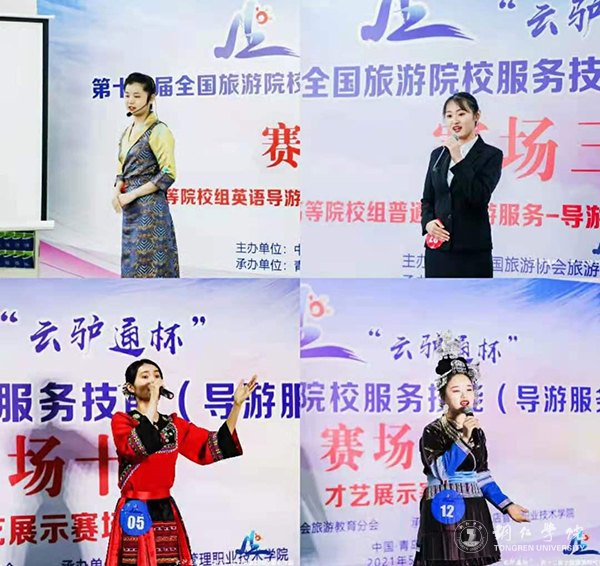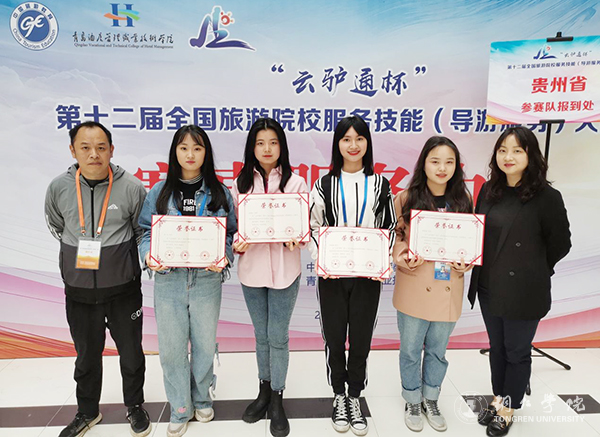 在本、专科院校学生同台竞技的激烈比拼中,beat365经济管理学院旅游管理专业的李泳梅、袁丽红、陆黎娇、雷洁四位选手经过理论考试、导游讲解、才艺展示三个环节,最终荣获英文导游服务二等奖1项、三等奖1项,荣获普通话导游服务二等奖1项、三等奖1项,总分名列贵州省参赛院校第一名,是beat365参加该赛事以来取得的最好成绩。