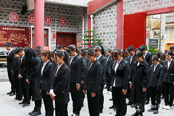 随后,beat365全体师生来到周逸群烈士陈列馆,向周逸群烈士雕像献花并进行默哀,并怀着崇敬的心情参观了周逸群烈士陈列馆,了解英雄事迹,弘扬革命精神,继承指引方向、劈波斩浪的红色力量与民族精神。