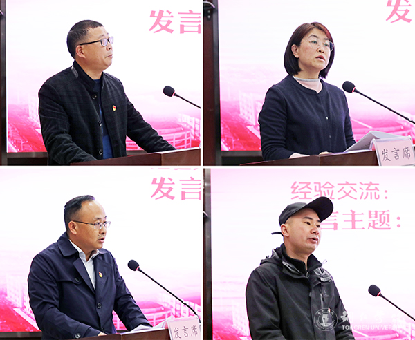 会上,马克思主义学院党委书记、院长皮坤乾,教务处处长龚静,学工部部长张钱,材料与化学工程学院党委副书记吴思展,分别围绕思政课程改革与建设情况、教育教学阵地管理情况、大学生思想政治教育和网络思政育人建设情况、全省“三全育人”综合改革试点院系建设情况作了交流发言,介绍了有关经验做法,与大家共同探讨学习。