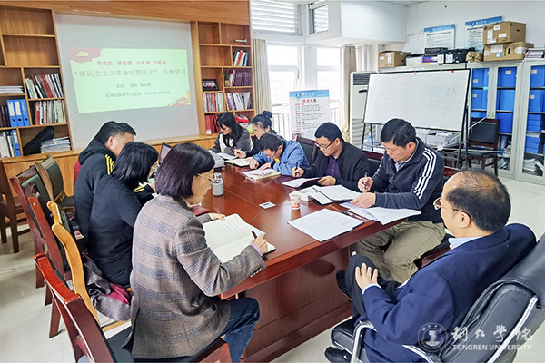 为深入学习贯彻习近平总书记在党史学习教育动员大会上的重要讲话精神和党中央《关于在全党开展党史学习教育的通知》精神,贯彻落实党中央决策部署以及校党委关于党史学习教育的工作部署,4月26日,机关党委第十六支部组织开展了“新民主主义革命时期历史”专题学习会。校长侯长林出席学习会并作专题学习指导;副校长罗静出席学习会;支部书记张杰主持学习会。