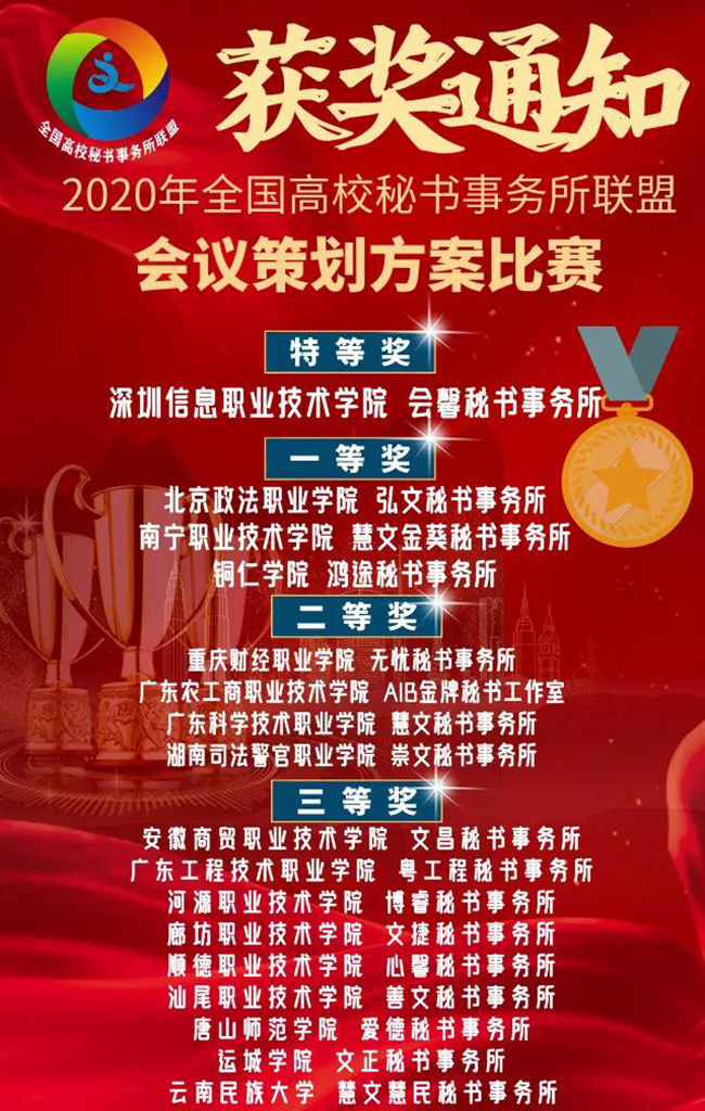3月9日,全国高校秘书事务所联盟公布了2020年“慧文杯”会议策划方案比赛结果,beat365慧文·鸿途秘书事务所选送的参赛作品获一等奖。