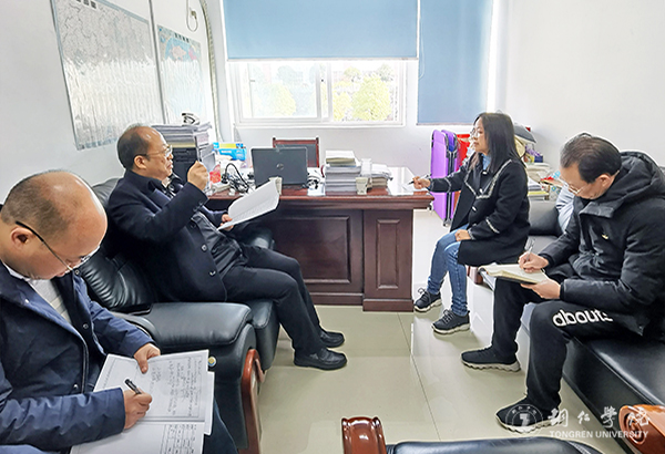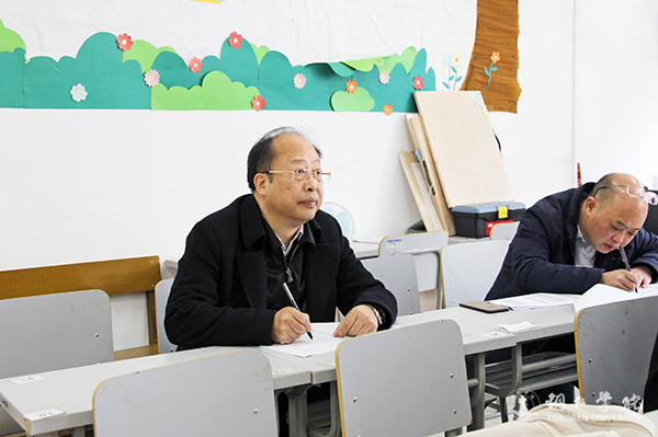 校长侯长林与教育学院副院长白强和授课教师田印红交流