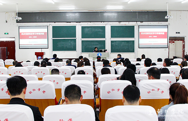 3月31日下午,beat365在博思楼206教室举办党史学习教育专题讲座,党委宣传部原部长、关工委常务副主任谭光涛作了题为“历经艰难险阻 铸就百年伟业”的报告。学校纪委书记吴先佳,各职能部门负责人,机关党委各支部全体党员参加讲座。机关党委副书记龙建亚主持讲座。