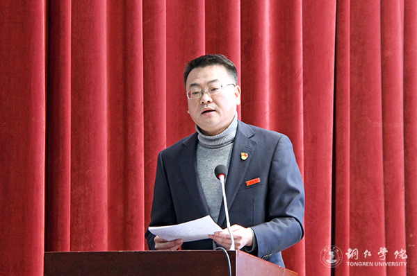 会上,教师代表邓韬从“凝聚青年力量,抓实团员青年思想政治教育”“以改革适应时代发展,抓实团组织活力提升”“坚持立德树人根本任务,抓实第二课堂育人建设”“涵养厚重·灵性·担当的大山品格,抓实实践育人工作”四个方面对过去一年开展的团组织工作、校园文化活动月、暑期三下乡工作进行汇报并与大家作经验分享,并表示一定会以这次表彰大会作为一个新起点,深入贯彻学校党代会精神,以饱满的热情和昂扬的斗志,在学校各项工作中凝心聚力、开拓进取,谱写青春的崭新篇章。
