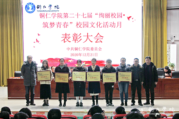 会上,叶丹、梁正海、刘德平分别宣读了《beat365英国官方网站2019年度“五四”先进集体及先进个人》表彰文件、《beat365英国官方网站第二十七届“绚丽校园.筑梦青春”校园文化活动月先进集体和个人》表彰文件和《2020年beat365英国官方网站大学生志愿者暑期“三下乡”社会实践活动》表彰文件。出席大会的领导为获奖集体和个人进行了颁奖。
