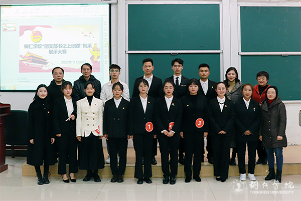 团课主题围绕着共青团改革工作精神、贵州红色文化、贵州脱贫攻坚成就、中国特色社会主义的制度优势、毛泽东思想、邓小平理论、“三个代表”重要思想、科学发展观、习近平新时代中国特色社会主义思想等内容展开。一号选手文琼同学以“疫情防控之中国特色”这一主题拉开了本次决赛的帷幕,讲述了在疫情防控斗争中,党中央统一部署、协调各方,彰显出坚持党的集中统一领导的显著优势和中国共产党的领导是中国特色社会主义制度的显著优势。二号选手李辉同学用精彩的PPT和生动的视频完美地诠释了“伟大新中国,您好”这个主题,富含感染力的讲课方式使同学们了解了祖国的成长历程、伟大成就及祖国所经历的磨难。接下来,8位选手的授课形式丰富多彩,他们的精彩讲课打动在场评委和观众,博得现场阵阵掌声,展现了“青春心向党 建功新时代”新青年大学生一心向党、永远跟党走的坚定决心。其中龚尚艳同学以“初心不改,接力不断”这一主题呼吁青年大学生要不忘初心、牢记使命,拥抱新时代、践行新思想、实现新作为,将比赛推向高潮,赢得在场观众掌声。最后,比赛在曹星月同学“时代在召唤青年,青年当不负时代”的讲解中圆满结束。