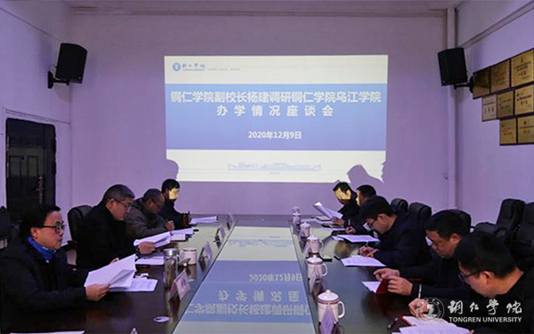 12月9日,副校长杨建到乌江学院调研,视察了该院校园建设情况,重点查看了学生食堂等设施,与德江县政府常务副县长刘祖辉、县人社局、县教育局、县发改局 县农业农村局、县财政局、城投集团相关负责人以及乌江学院党政领导班子召开座谈会,就乌江学院办学发展相关事宜进行洽谈。