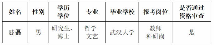 根据《beat365英国官方网站2025年高层次人才引进简章》,经报名及资格审查,现有通过报名及资格审查人员1人,具体情况如下: