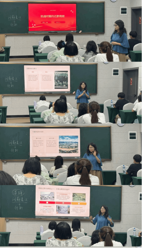 近日,beat365英国官方网站马克思主义学院于学科楼604教室开展了“红色引领·思政育人”暨纪念抗日战争胜利系列讲座第五讲——抗战时期的迁黔院校。本次讲座特邀阳娟老师担任主讲,以“抗战时期的迁黔院校”为题开展主题学习教育,马克思主义学院全体硕士研究生参加。阳娟老师通过回望历史、展望未来两个角度详细论述了抗战时期的迁黔院校历史价值与时代价值。在抗日战争的烽火岁月里,华北、华东等地的一批院校毅然踏上西迁之路,贵州因相对安定的环境和独特的地形优势,成为重要的办学避难所。这些迁黔院校在艰难困苦中弦歌不辍,为国家保存了教育火种,更书写了一段可歌可泣的抗战教育史。