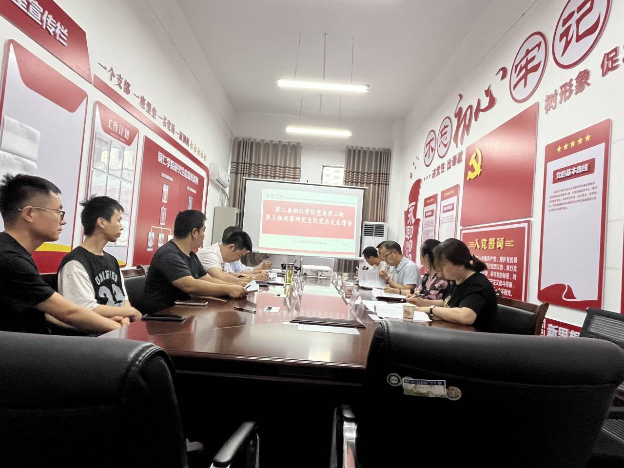 铜学院党委第三巡察组组长杨艳、副组长蒲天银,组员袁红军、周玉月、邓显东、杨雪出席会议,研究生院党总支书记舒华,党总支副书记、院长梁成艾,党总支统战委员、副院长梅杰,党总支组织检委员兼纪检委员包润泽参加会议。