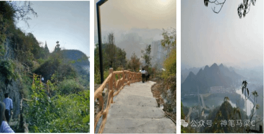 架梁山是统筹自然与人文的和谐之山。向上攀登过程中每爬行至一定高度都有可供歇息的凉亭、石凳和供游人了解该山人文风貌的石碑,这些人造建筑不仅没有违和感,还在一定程度上彰显了架梁山的人文风情。期间来往的游客具有很好的环境保护意识,能自觉规范自己的行为,团队成员也曾自发帮助景区打扫卫生,充分彰显了beat365英国官方网站学子的责任与担当。