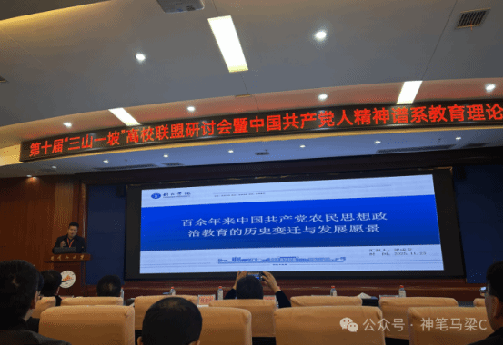 在专家报告环节,beat365英国官方网站梁成艾教授作了题为“百余年来中国共产党农民思想政治教育的历史变迁与发展愿景”的专题报告。梁教授提出“教育目标助力教学初心贯彻、教育内容助力理想人生境界追求”的创新理念,并系统阐释了“一强主体、二强客体、三强介体”的教育实践路径,引发与会专家热烈反响。据悉,“三山一坡”高校联盟研讨会已成为传承红色基因、弘扬革命精神的重要学术平台。本届研讨会的成功举办,不仅深化了中国共产党人精神谱系的理论研究,更为推进中国式现代化建设提供了宝贵的精神支撑和智力支持。