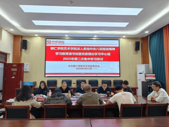 4月21日下午,我院深入贯彻中央八项规定精神学习教育读书班暨党委理论学习中心组2025年第二次集中学习研讨会在艺术学院多功能会议室召开。院党委书记徐美主持会议。院党委委员及行政班子成员,各系科主要负责人参加会议。