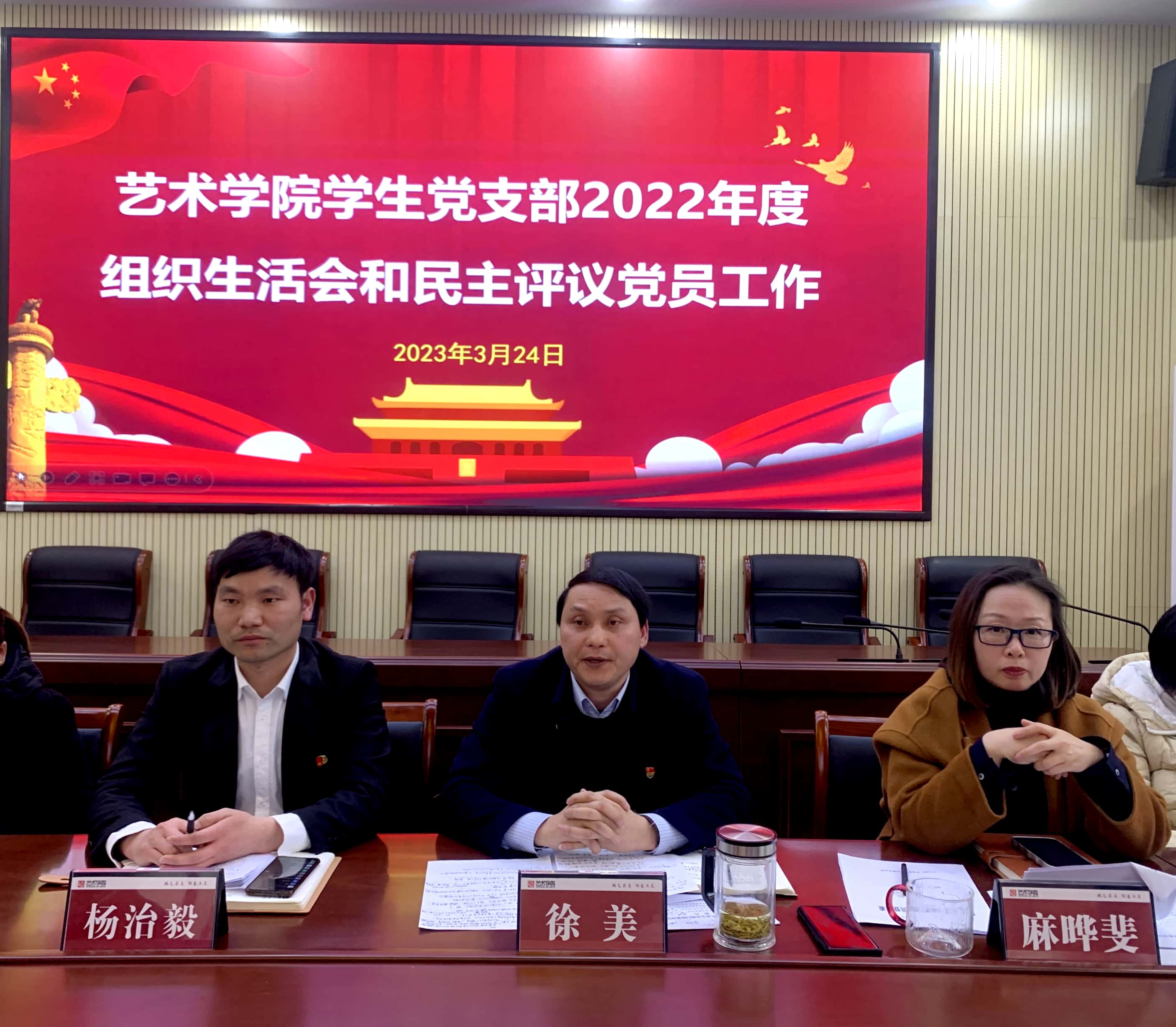 3月24日,艺术学院学生党支部在美术楼会议室召开2022年度组织生活会和民主评议党员工作。艺术学院党委书记徐美到会指导,艺术学院党委副书记麻晔斐以普通党员身份参会,党支部全体党员及群众代表参会。