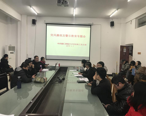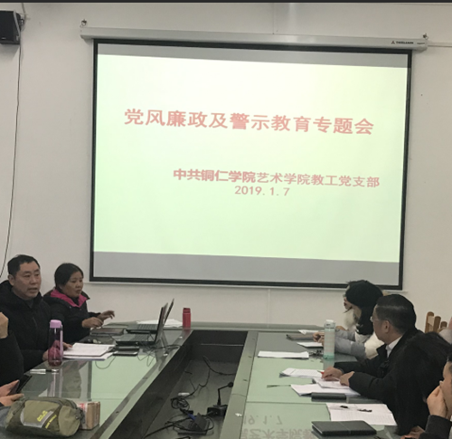 为了进一步加强党风廉政和反腐败工作,增强全体教职工的廉洁纪律观念,自觉做到遵守党的纪律不动摇,执行党的纪律不走样。2019年1月7日下午,艺术学院在会议室召开了党风廉政及警示教育专题会。会议由艺术学院党委书记崔德虎主持,全体教职工参加了会议。