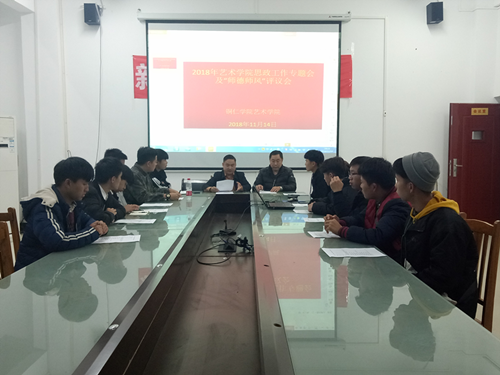 为了一进步加强思想政治工作,狠抓师德师风教育工作,为学生树立“人类灵魂工程师”的良好形象,提高教师职业道德和服务学生的水平,艺术学院于2018年11月14日晚在美术楼会议室,召开了思政工作专题会及师德师风评议会,艺术学院党委书记崔德虎、副院长谢云中出席会议,各班班长参加了会议。