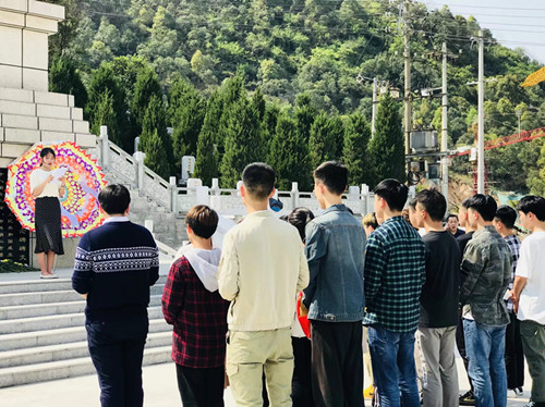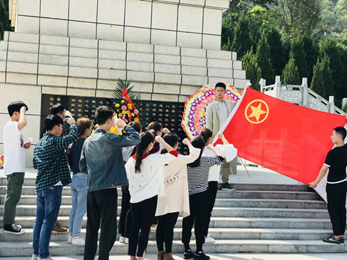 4.2日中午,艺术学院学生党支部和团总支学生会成员前往革命烈士陵园进行祭扫活动。冒着炎炎烈日,党员和团员们登上革命烈士墓,缅怀革命先烈,怀念革命烈士,重温入党誓词,为烈士敬献鲜花。此次活动共有预备党员及团总支学生会25人参加。