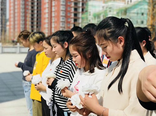 随后,全体党员和团员向革命烈士默哀。默默的哀思表达对他们为真理而战,宁死不屈的钦佩,用无声的思念表达对他们用生命照亮了后人的敬仰。最后,每一位党员和团员手持纸花向烈士碑敬献,以表达对先烈的深切哀悼。