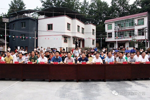 6月15日晚,整洁、美丽的碧江区河西街道新庄村里,歌舞欢腾,老百姓的欢呼声此起彼伏。这是beat3652018年“乡风文明助推脱贫攻坚乡村振兴”文艺巡演走进了新庄村,为当地村民带去了精彩的节目,给老百姓呈上了一场丰盛的文化盛宴。铜仁市司法局党组书记、局长张翼,我院艺术学院党委书记崔德虎,校党委宣传部副部长杨学礼,河西街道办事处主任吴頔等到场指导和观看巡演。