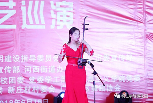 巡演中,我院覃春江老师带来的歌曲《驻村干部》,以朴实的语言、优美的旋律、深情的演唱,对满怀激情奔赴农村一线、真情服务贫困乡亲的驻村干部给予了讴歌。我院学生的书画表演《勤廉照花开》融合国画、书法和琵琶、古筝演奏为一体,描绘了党政清廉、社会文明、乡村振兴的景象,也展现出了我院学子才华横溢、专业扎实、技艺精湛。还有小品《苦乐村官》《懒汉脱贫》、二胡独奏《战马奔腾》、舞龙舞狮、川剧变脸等节目,都令老百姓们欢呼雀跃、赞不绝口、鼓掌叫好。
